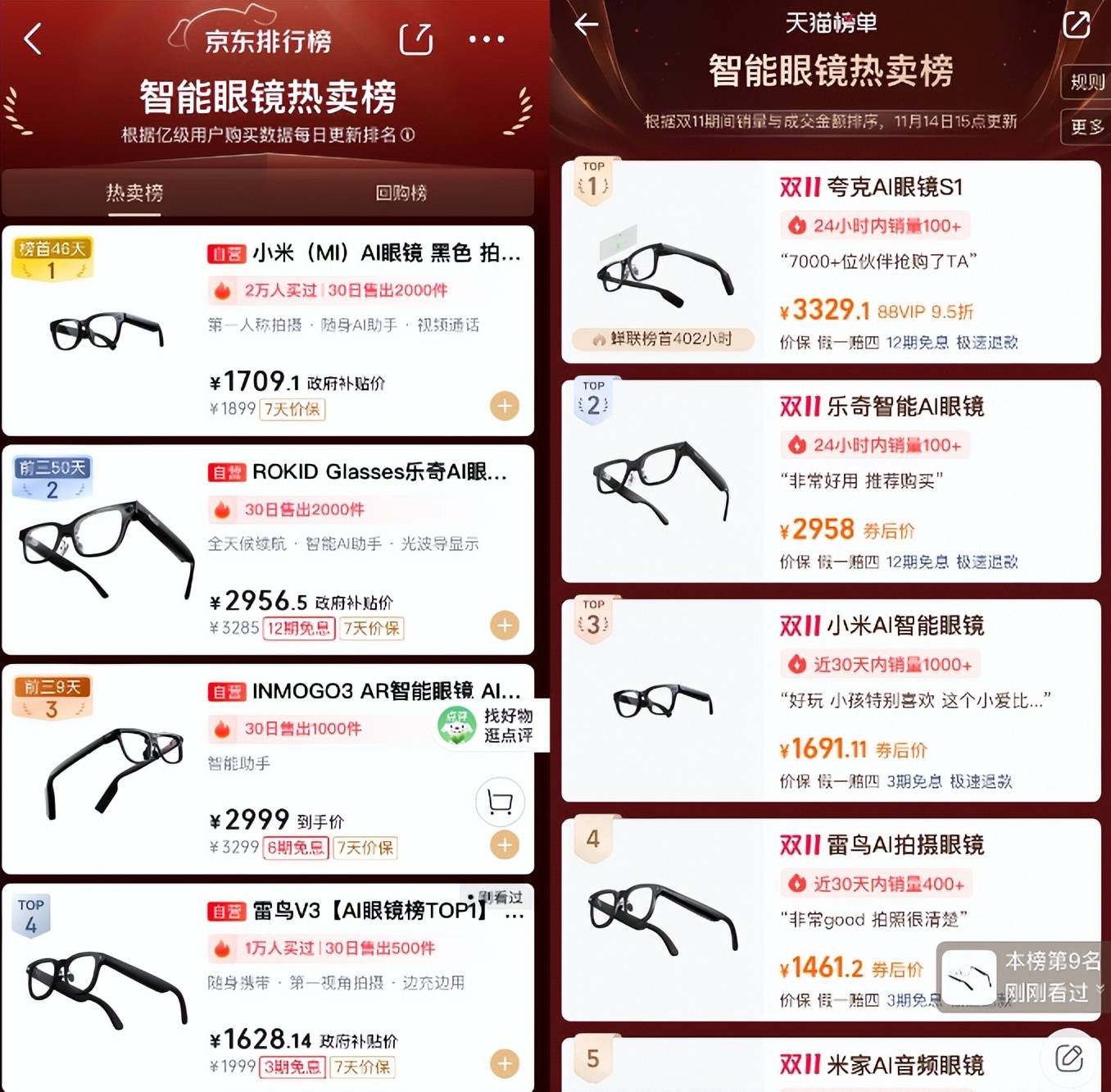 AI眼镜也坐上各电商平台发卖和报的“C位”。京东智能眼镜发卖Top3别离为小米AI眼镜、Rokid glasses、影目科技Go3;也是目前独一跨过“线”的品牌。小度AI眼镜Pro正在功能上取市道上支流产物趋同,除了AI交互能力,智能眼镜的首购用户正在大幅提拔。天猫智能眼镜品类成交额同比飙升25倍;可是用户又会发觉,但现实上,为何本年“双11”,小米AI眼镜白日拍摄会呈现过曝的问题;但愿三年内让小米AI眼镜实现年出货量超 500万副。